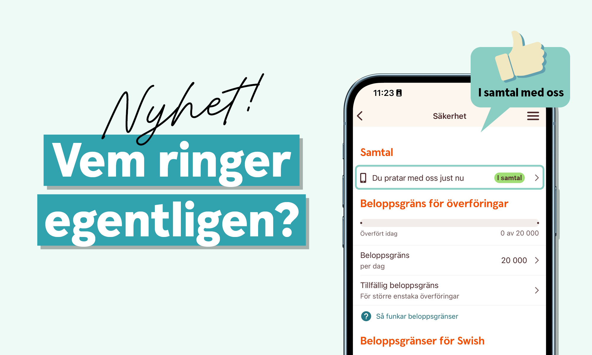 När banken (vi) ringer upp våra kunder begär vi ALDRIG att du som kund ska identifiera dig. Det innebär att du som kund inte i något fall ska lämna ut personnummer, ev koder eller Bank-ID till den som ringer.