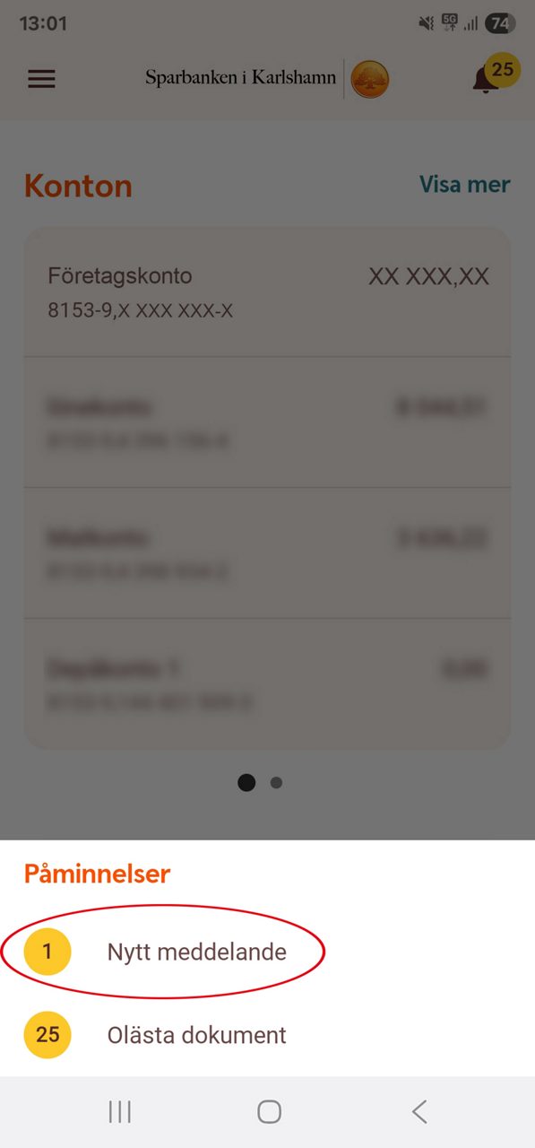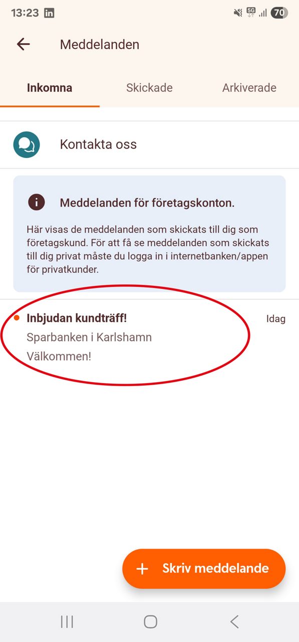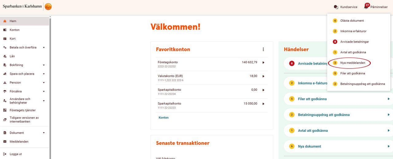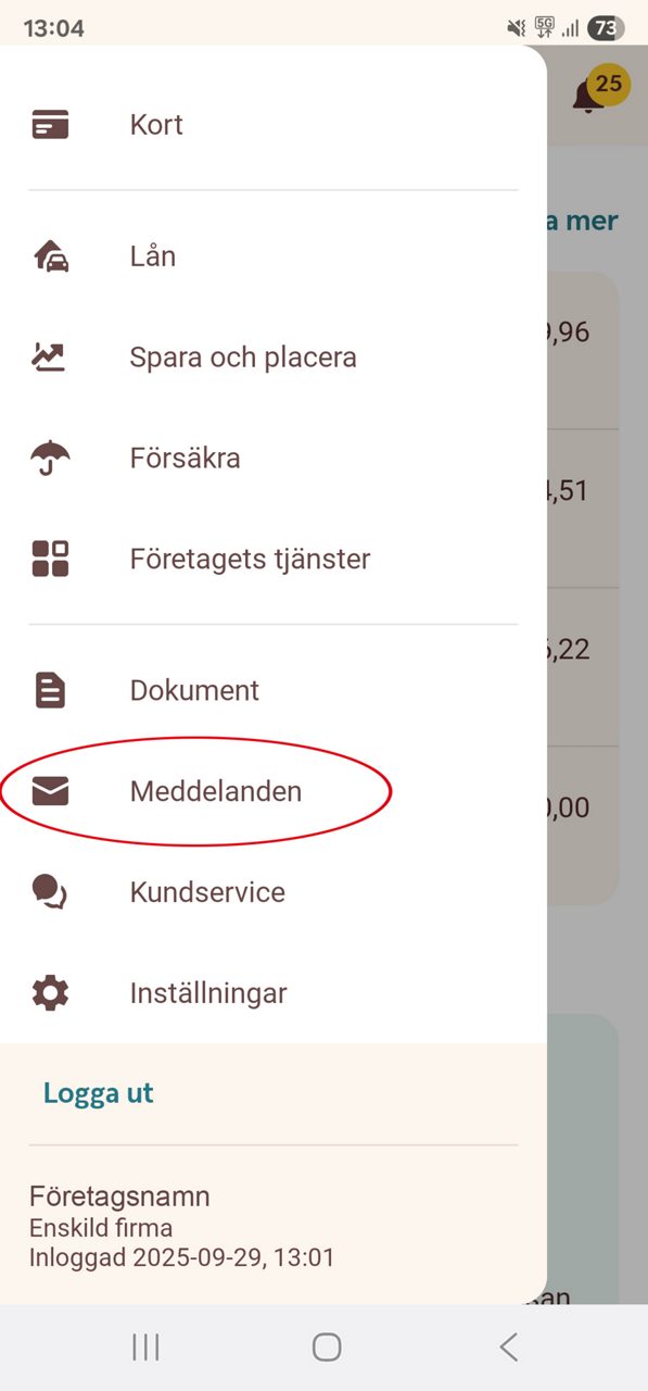 Här finns instruktioner till hur du hittar dina meddelanden från banken i Internetbanken och företagsappen. Följ nedan steg.