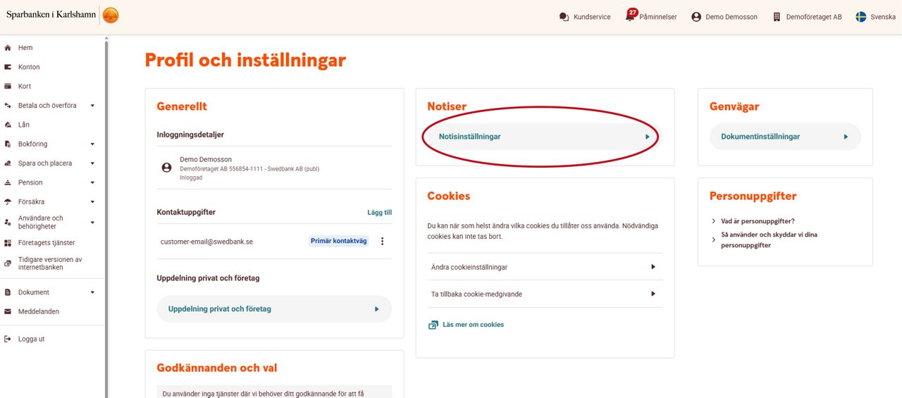 3. På sidan Profil och inställningar klickar du på notisinställningar.