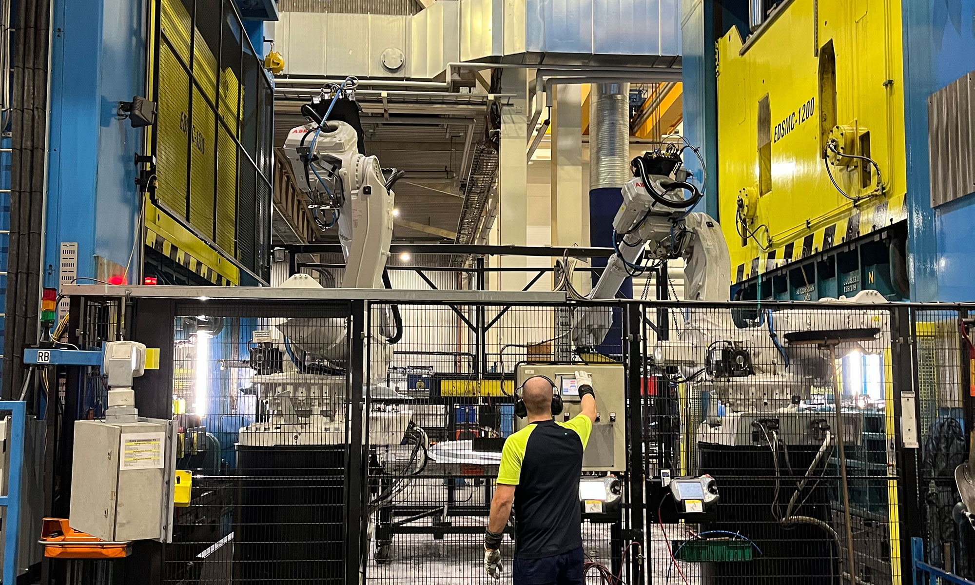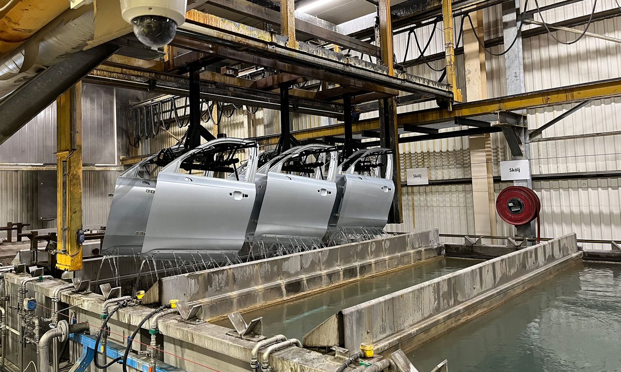 Det var skiftbyte i fabriken och vi fick följa med in bakom kulisserna. Vi gick förbi avancerade robotar, staplade karosseridetaljer i mängder och fick se hur det går till i måleriet när delarna får sin rostskyddande grundfärg. Det byggs ett nytt kontor och ett personalgym för bättre arbetsmiljö. Hela företaget växer.